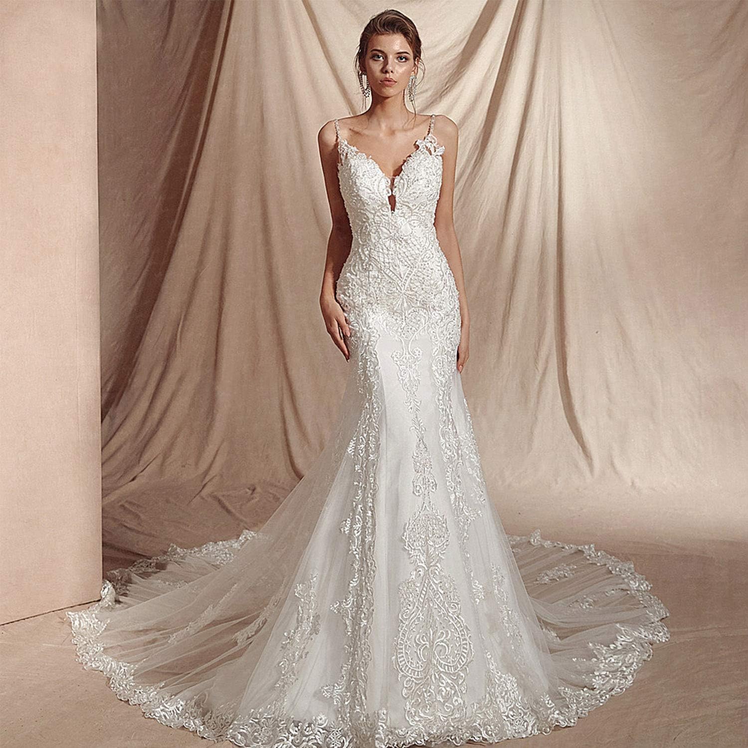 Trending Backless Fishtail Wedding Dress With Long Train A romantic sleeveless lace wedding dress with an open back and a train. Backless Fishtail Wedding Dress With Long Train : You'll receive email and feed alerts when new items arrive.