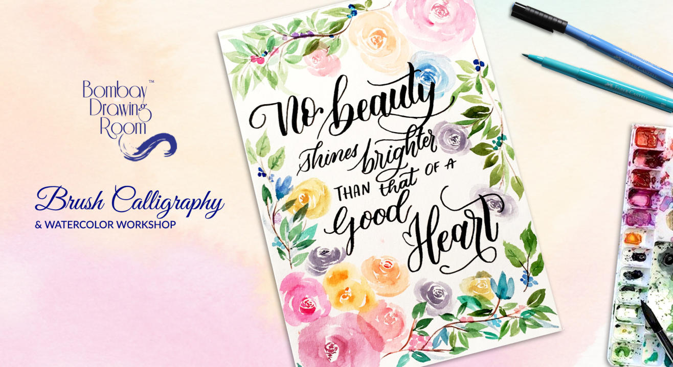 Book Tickets To Brush Calligraphy Watercolor Workshop By Bombay Drawing Room - Calligraphy is an artistic writing style where the pressure is varied to create thick and thin lines, all in a single stroke.