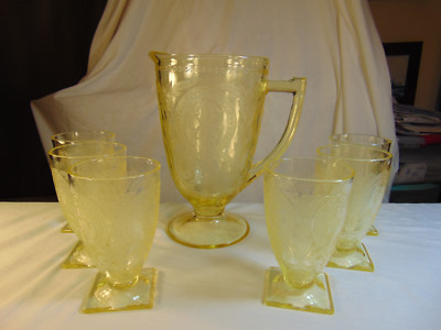 Trending Yellow Depression Glass Pitcher It is generally understood to mean the inexpensive dinnerware. Yellow Depression Glass Pitcher - Yellow pitcher~florentine~hazel atlas depression glass.